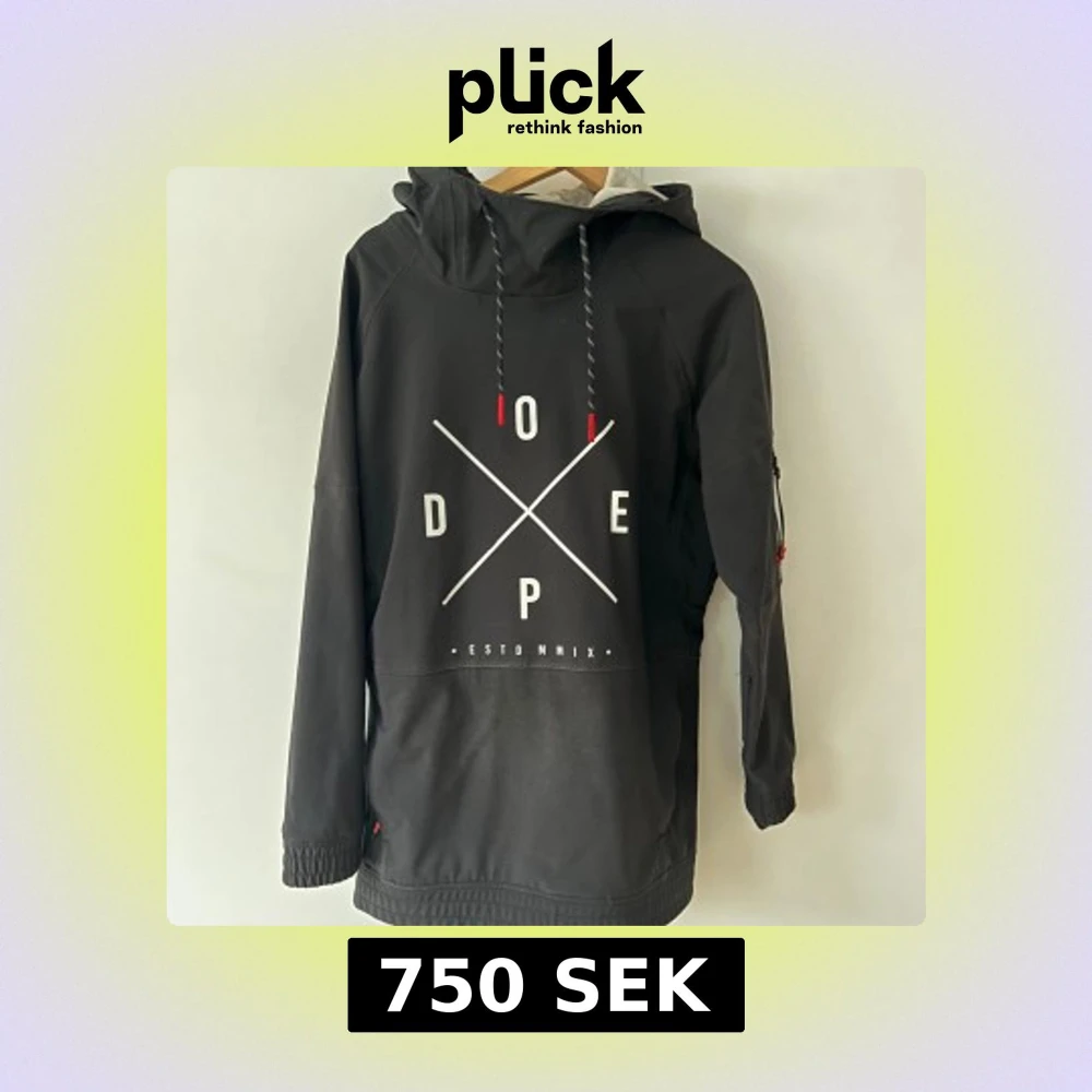 Svart vindjacka från Dope med stor vit grafisk print på framsidan och coola röda detaljer på snörningen. Jackan har huva, långa ärmar och elastiska muddar. Storleken är small men passar även mig som är en m