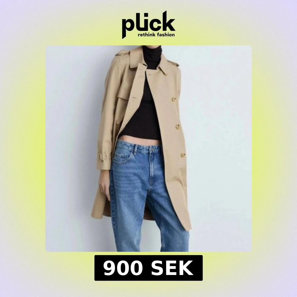 Snygg beige trenchcoat med klassisk krage, axelklaffar och bälte i midjan. Jackan har knappar framtill, justerbara spännen vid ärmsluten och en stilren, rak passform. Perfekt för dig som gillar tidlös och clean stil.