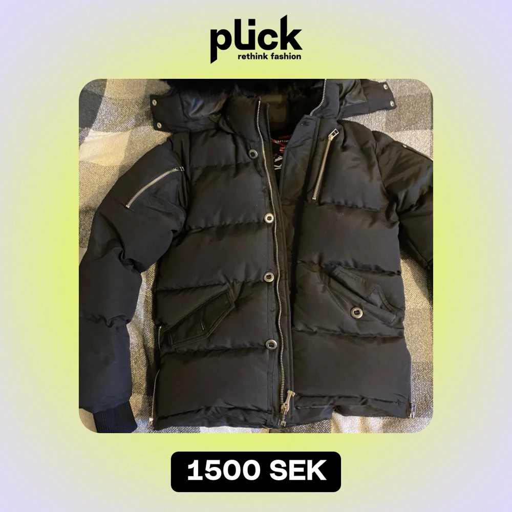 Säljer en svart dunjacka från Moose Knuckles i mycket bra skick. Jackan har en pufferstil med dragkedja och knappar, samt coola detaljer som metalliska dekorationer på ärmarna. Perfekt för kalla vinterdagar! 🖤