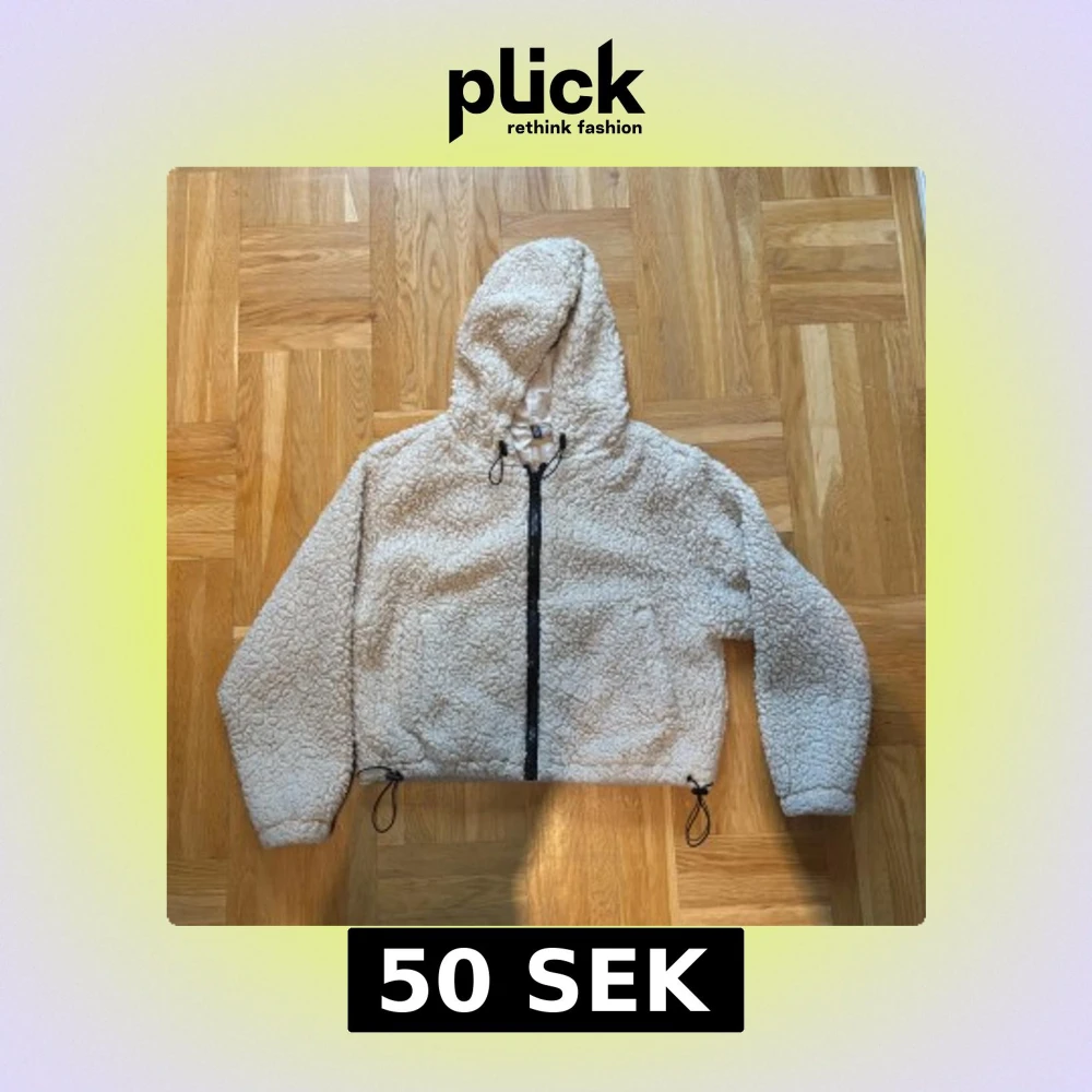 Supermjuk och fluffig croppad teddyjacka från H&M Divided i beige. Jackan har huva, hel dragkedja framtill och snörning i nederkant för en snygg passform. Perfekt för kyliga dagar och riktigt cozy vibes.