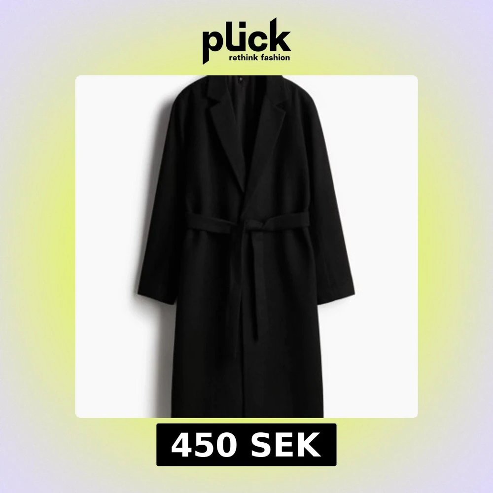 Elegant svart kappa med bälte och långa ärmar. Perfekt för kyligare dagar med sin stilrena design och klassiska snitt. Använd en gång