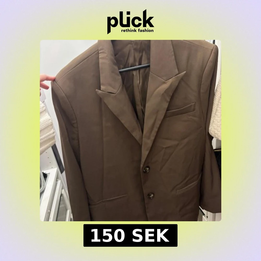 Snygg brun kavaj med klassisk krage och två knappar framtill. Jackan har raka linjer, fickor och en stilren look som passar till många olika outfits. Materialet känns mjukt och har en matt finish. Perfekt för dig som vill ha en clean och enkel stil.