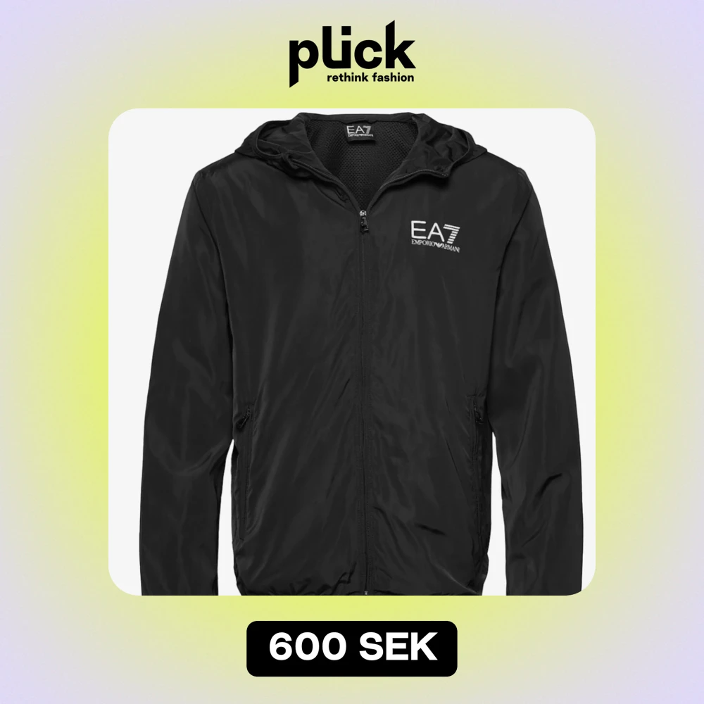 Säljer en stilren svart vindjacka från EA7 Emporio Armani. Jackan har en dragkedja framtill och en praktisk huva. , . Den är i mycket bra skick och typ som helt ny.