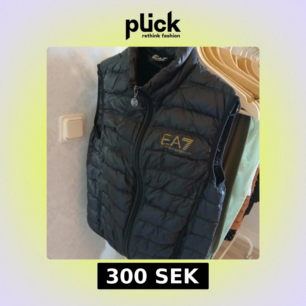 Snygg svart lättviktsväst från Emporio Armani med dragkedja och märkets logga i guld på bröstet. Västen har en quiltad design och hög krage. Inga skador eller märken. Kan användas av både dam,herr eller ungdom.