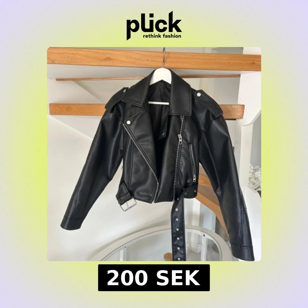 Svart skinnjacka med bälte och dragkedja