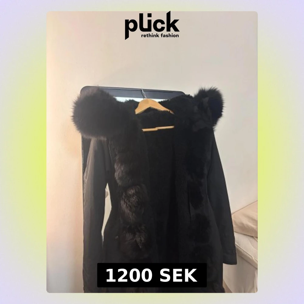 Säljer en svart pälsjacka med stor fluffig huva och breda pälsdetaljer längs öppningen. Jackan har lång ärm och är fodrad med mjuk päls på insidan, vilket gör den extra varm och skön. Perfekt för dig som vill ha en statementjacka med lyxig känsla. Pälsen är äkta och avtagbar. Passar xs-m köpt för 4000.