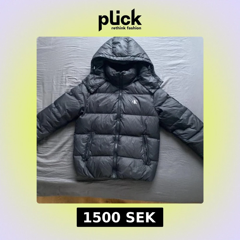 Säljer nu min snygga svarta dunjacka från Calvin Klein med huva och dragkedja. Perfekt för kyliga dagar med sin pufferdesign som håller dig varm. Jackan har en stilren look med CK-logga på bröstet och på vänster arm. Endast använd ett få tal gånger. Bara höra av er vid frågor eller ytligare bilder. Priset går att diskutera vid snabb affär.