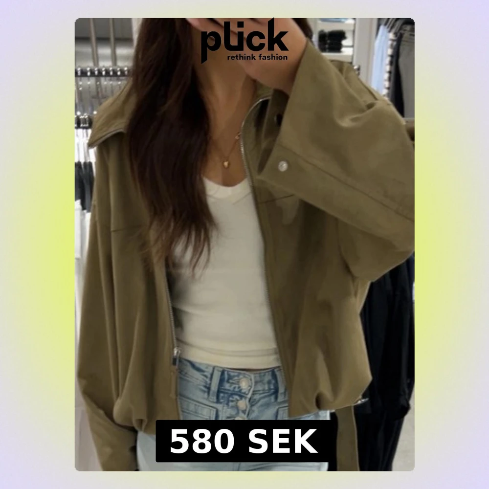 Snygg olivgrön bomberjacka med dragkedja framtill och bred krage. Jackan har en loose passform och långa ärmar, perfekt för en avslappnad stil. Tillverkad i ett mjukt material som känns bekvämt att bära.