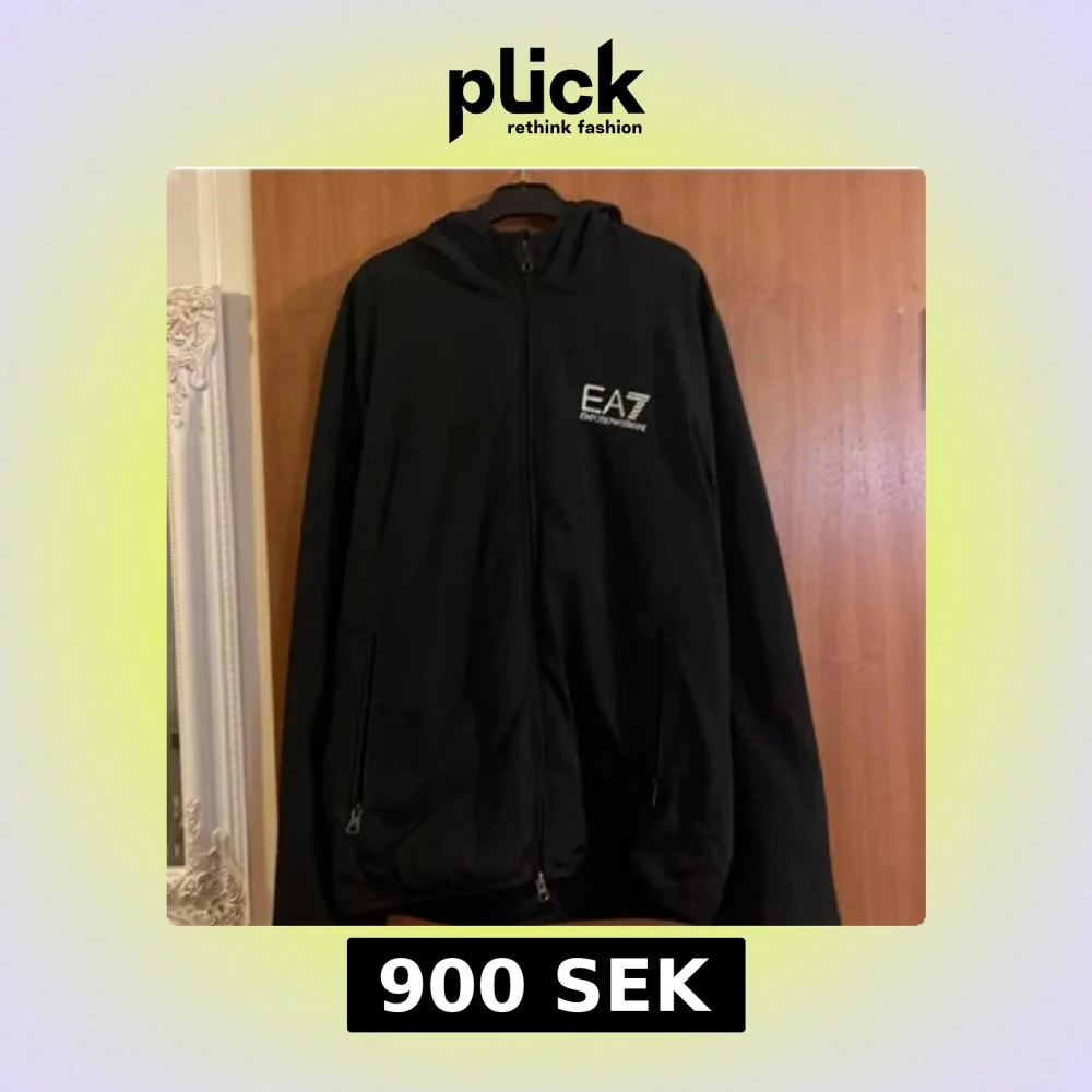 Säljer en stilren svart jacka från Emporio Armani EA7. Jackan har en dragkedja framtill och en huva för extra skydd. Perfekt för en sportig look med sin minimalistiska design och diskreta logga på bröstet.Pris kan sänkas vid snabb affär.