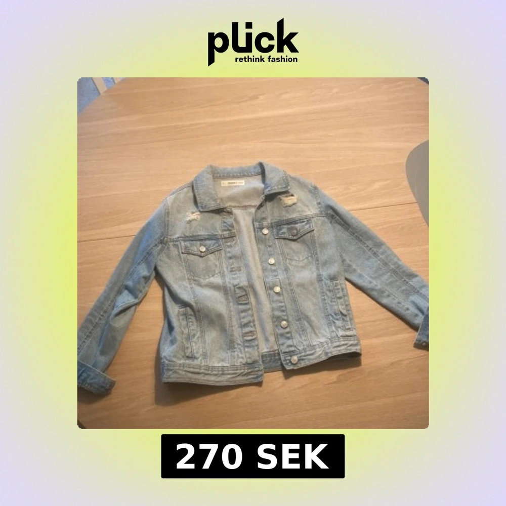 Säljer en klassisk ljusblå jeansjacka från Madison Denim i storlek S. Jackan har slitna detaljer vid axlarna, bröstfickor med knappar och silverfärgade knappar framtill. Perfekt oversized vibe och passar till allt.