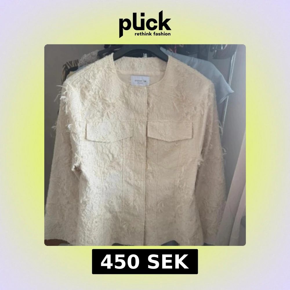 Säljer en beige overshirt från Stockh LM Studio i storlek S. Jackan har en cool, texturerad yta med fransiga detaljer och två stora bröstfickor. Rak passform och rund halsringning, perfekt för dig som gillar en unik och trendig look. Har en liten sminkfläck och vågar inte tvätta bort den därav priset!