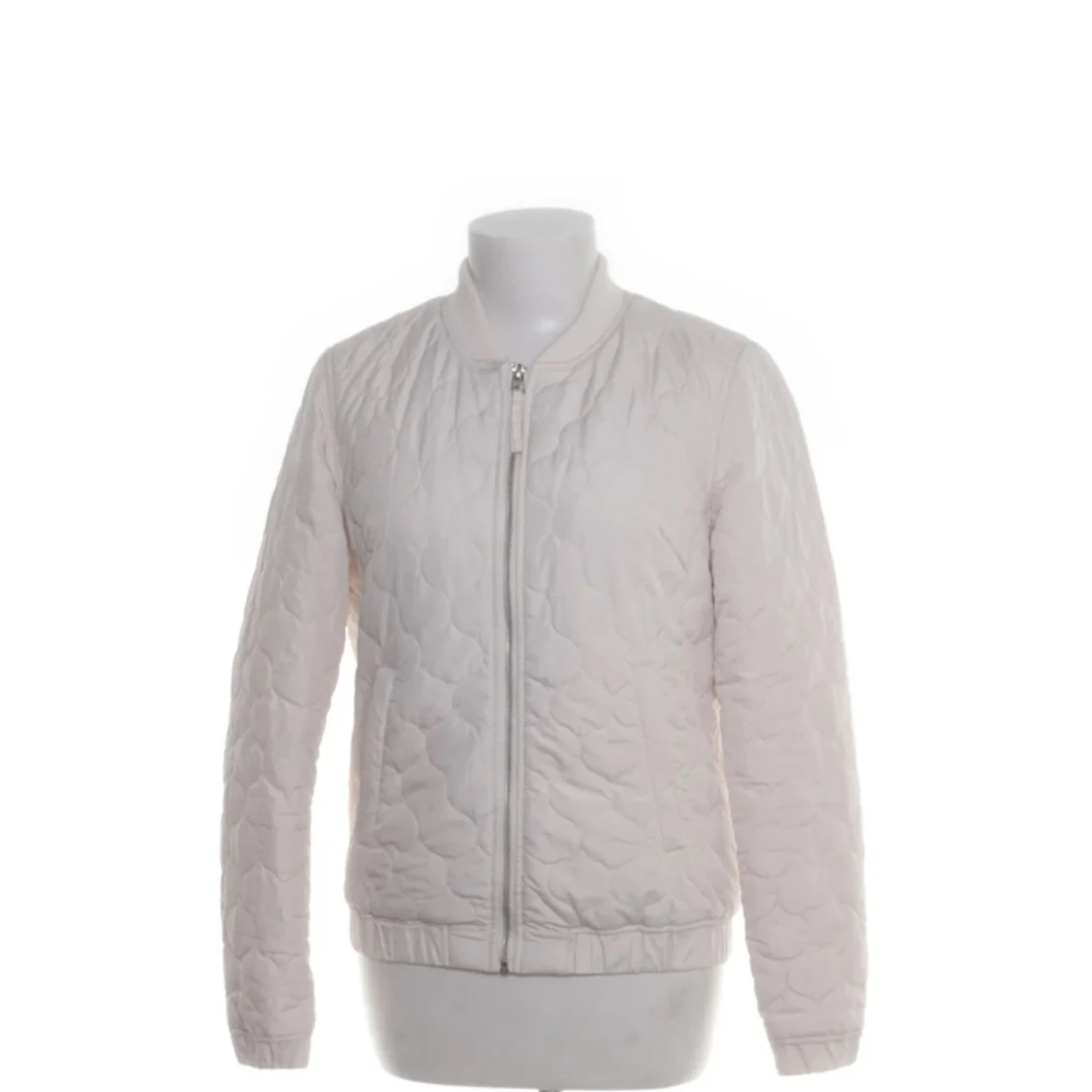 Snygg vit quiltad bomberjacka med dragkedja framtill och ribbade muddar. Jackan har en stilren look och passar perfekt till lager-på-lager-stil. Lätt vadderad och med klassisk bomberkrage.