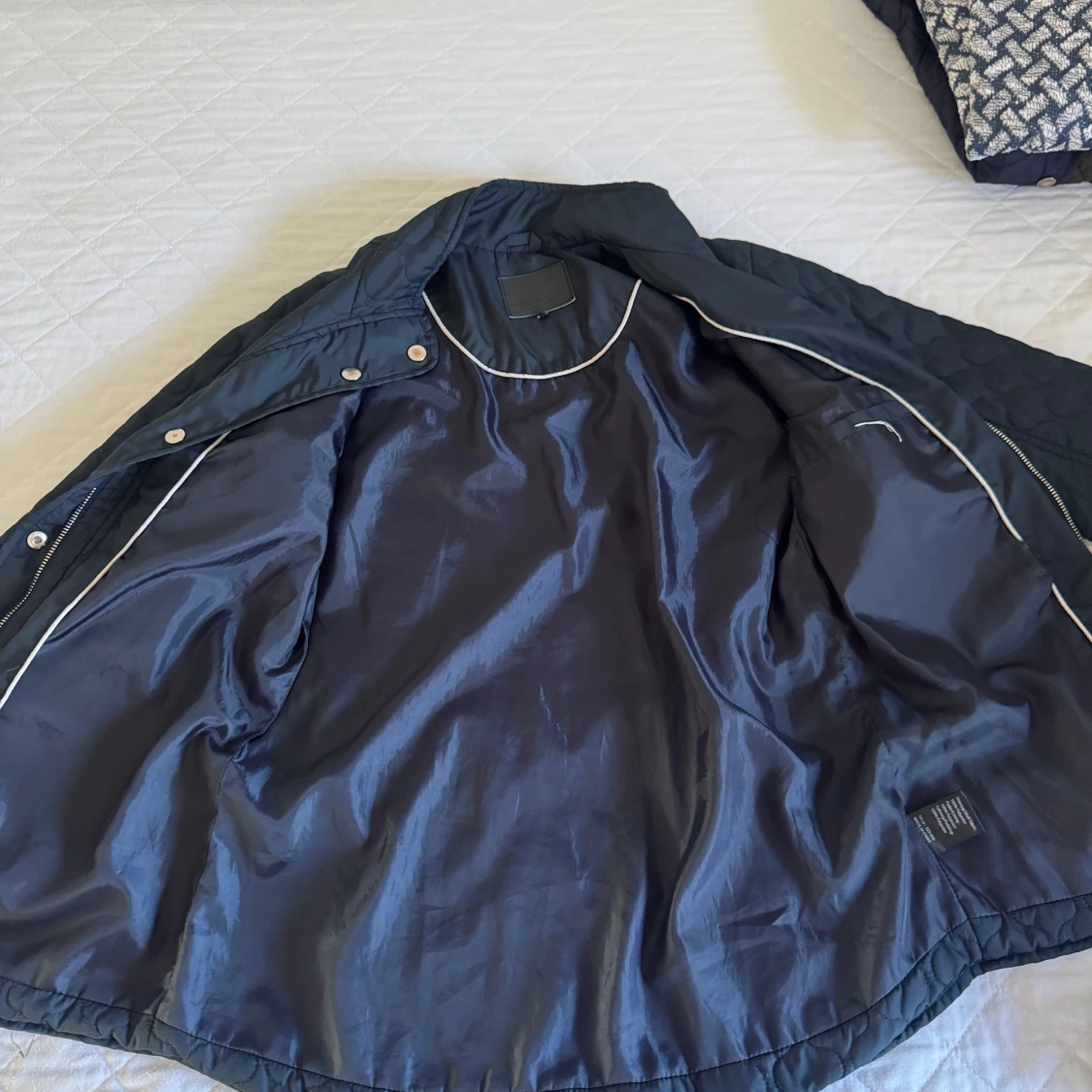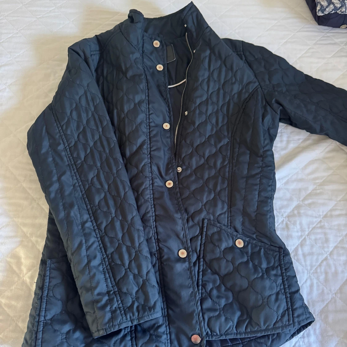 Quiltad mörkblå jacka från Cappuccini med snygga tryckknappar och dragkedja. Jackan har lång ärm, två fickor framtill och ett stilrent mönster i tyget. Perfekt för dig som gillar klassisk men trendig stil.