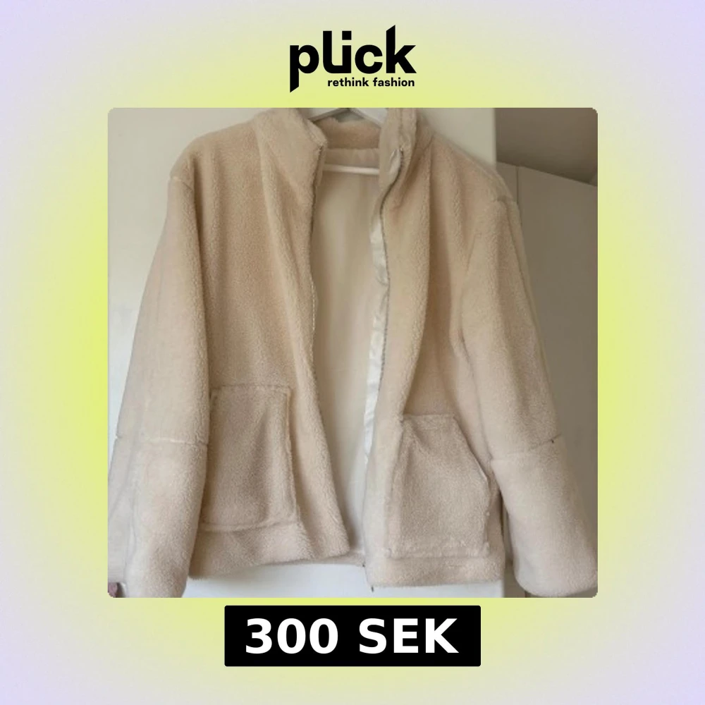 Mysig beige teddyjacka med dragkedja framtill och två stora fickor. Jackan har en hög krage och är tillverkad i fluffigt teddy-material som håller dig varm. Perfekt för kyliga dagar och enkel att matcha med olika outfits.