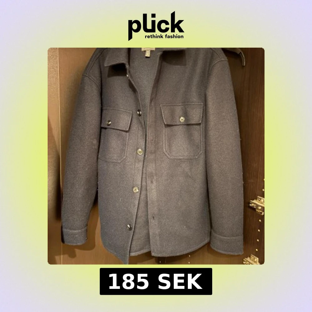 Stilren mörkgrå overshirt med klassisk krage och två stora bröstfickor med lock och knappar. Jackan är tillverkad i ull och har knäppning framtill. Perfekt för lager-på-lager och en clean look.