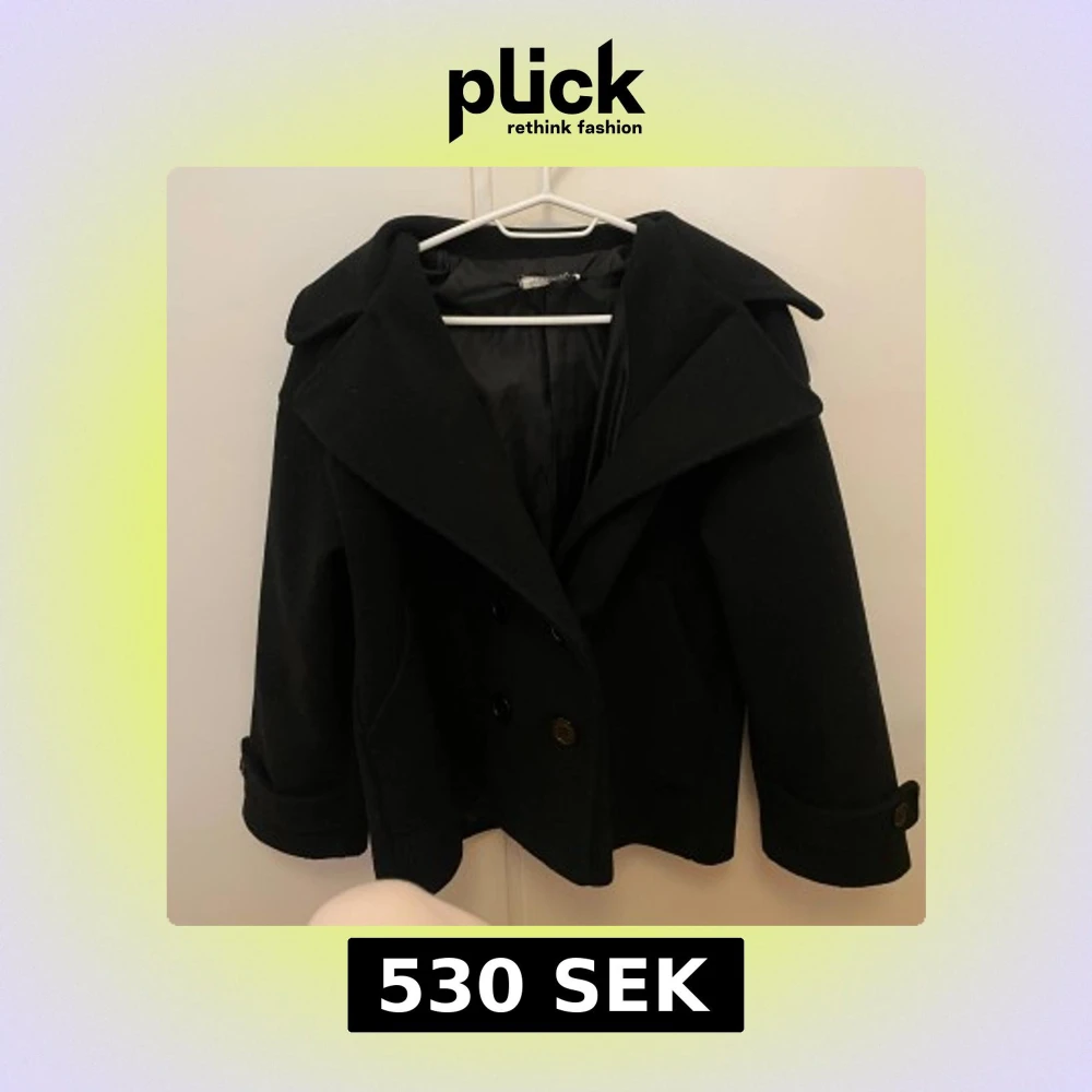 Snygg svart kappa med fyra svarta knappar. Från designbysi i storlek XS/S. Sitter superfint på och är perfekt för utgång/sen sommarkväll/middagar!