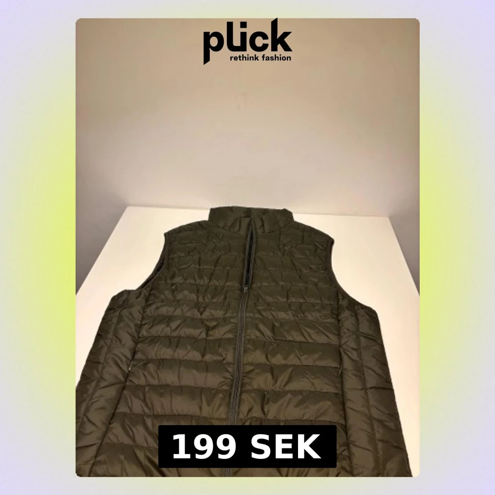Snygg mörkgrön dunväst med quiltad design och hög krage. Västen har en rak passform och stängs med dragkedja framtill. Perfekt att slänga över en hoodie för extra värme. Materialet är lätt och smidigt, vilket gör den enkel att bära och styla. Helt ny.