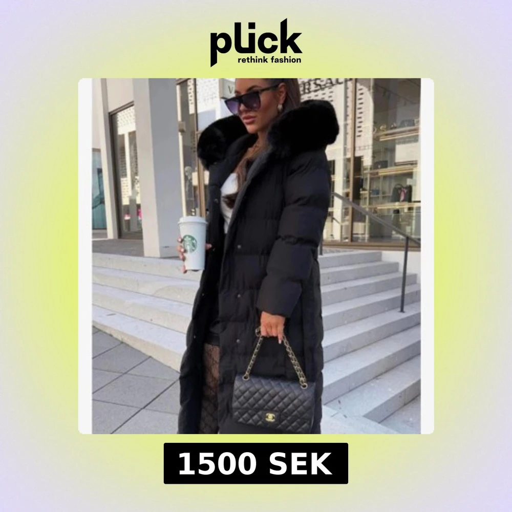 Säljer en lång svart dunjacka med stor krage i fuskpäls och bälte i midjan. Jackan har quiltad design, långa ärmar och stängs med både knappar och bälte. Perfekt för kalla dagar när du vill vara både varm och snygg. Bra skick men har tyvärr ett litet hål går enkelt att sy 💗