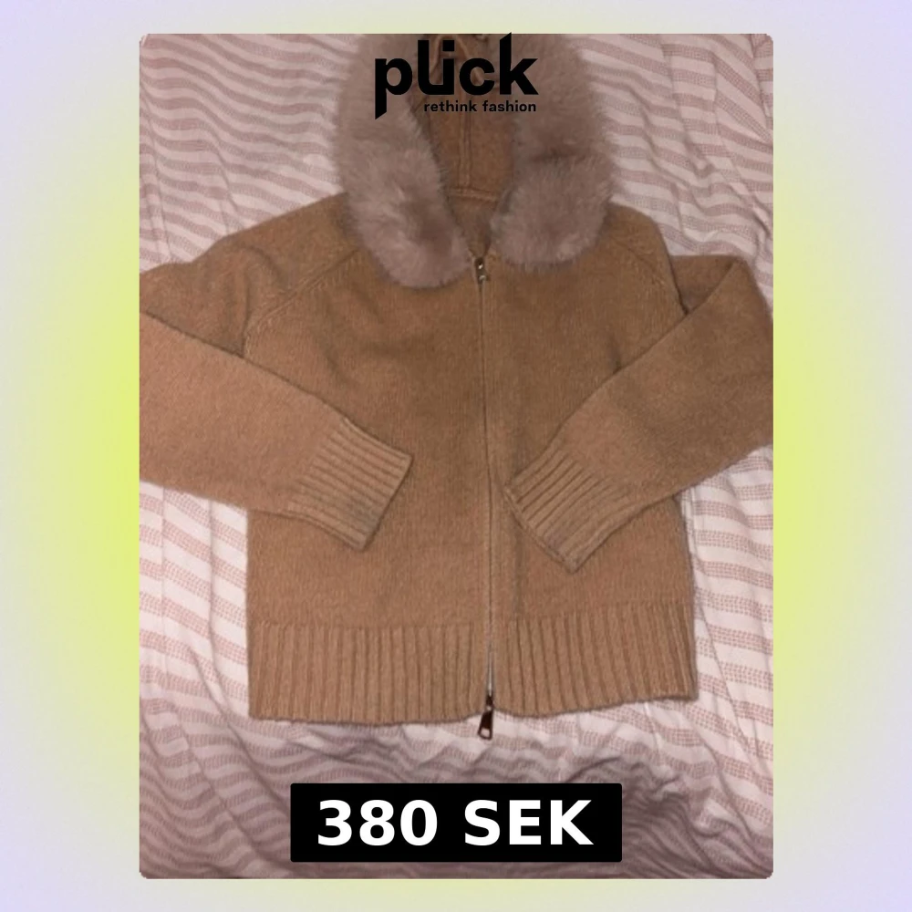 Beige cardigan jacka med fuskpäls