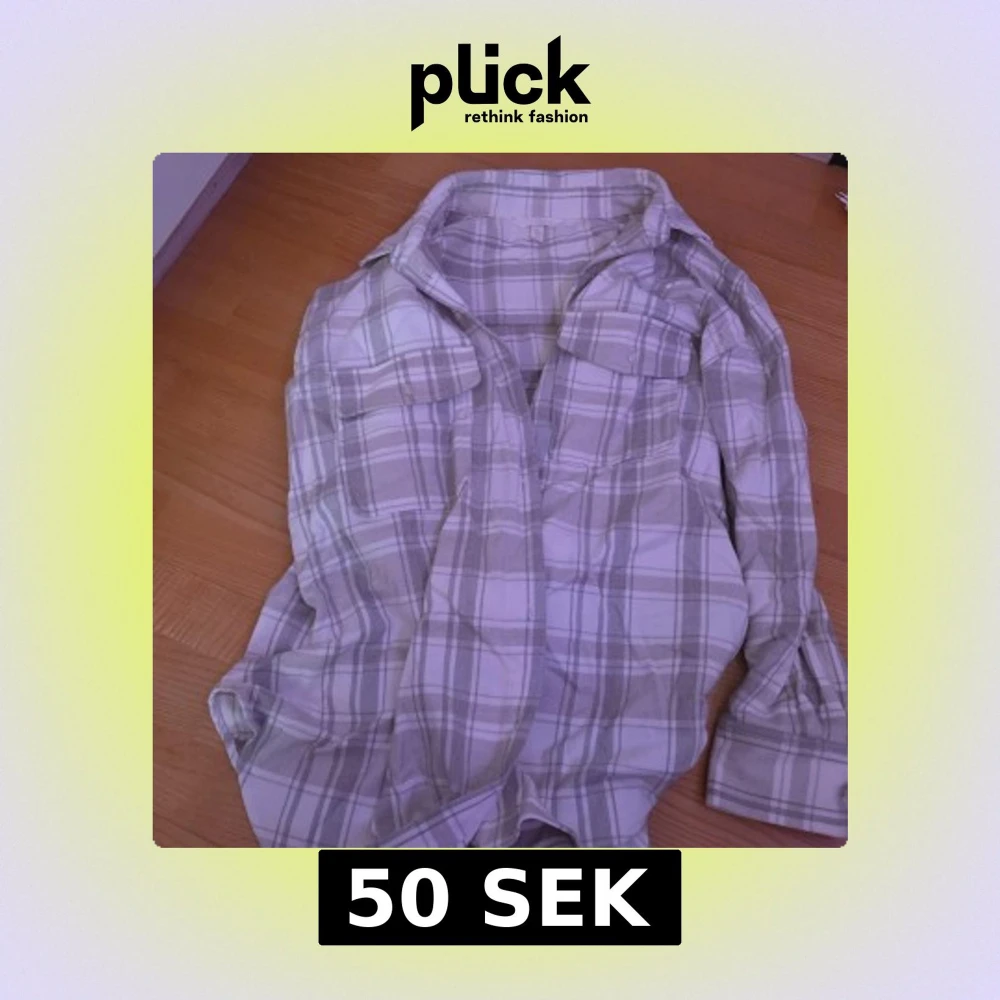 Säljer en stilren rutig skjorta i beige och vit. Skjortan har långa ärmar och två bröstfickor med lock. Perfekt för en avslappnad look.