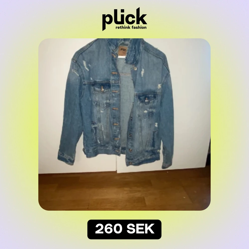Mörkblå oversize jeansjacka med slitningarna. Köpt på New Yorker, nytt pris 500 kr, jag säljer för 260 kr.