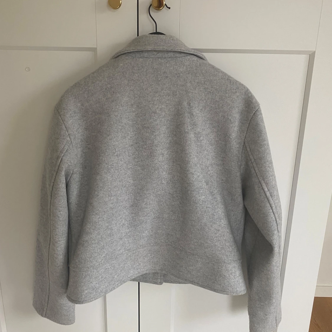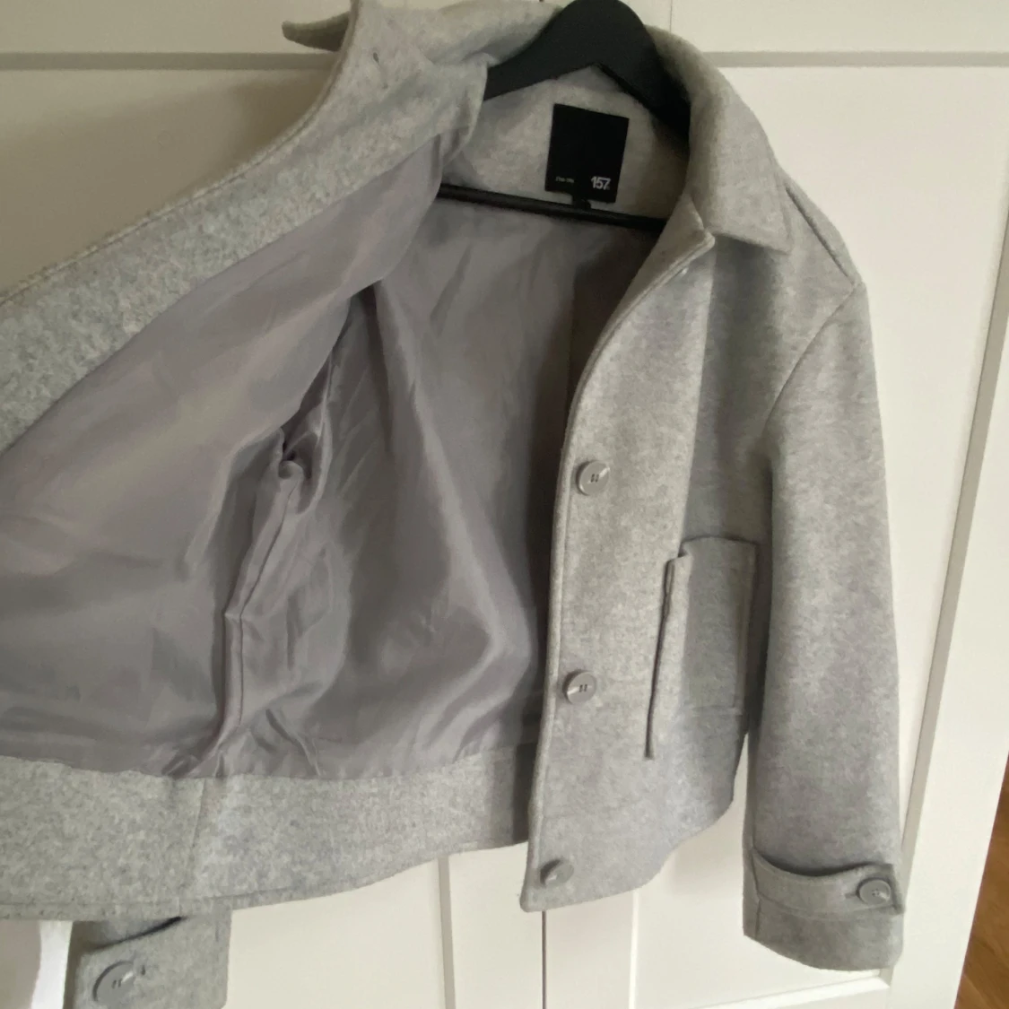 Snygg grå kappa från 157 med stora fickor och knappar framtill. Jackan är knappt använd och jag säljer den just för att den inte kommer till användning☺️Mycket bra skick