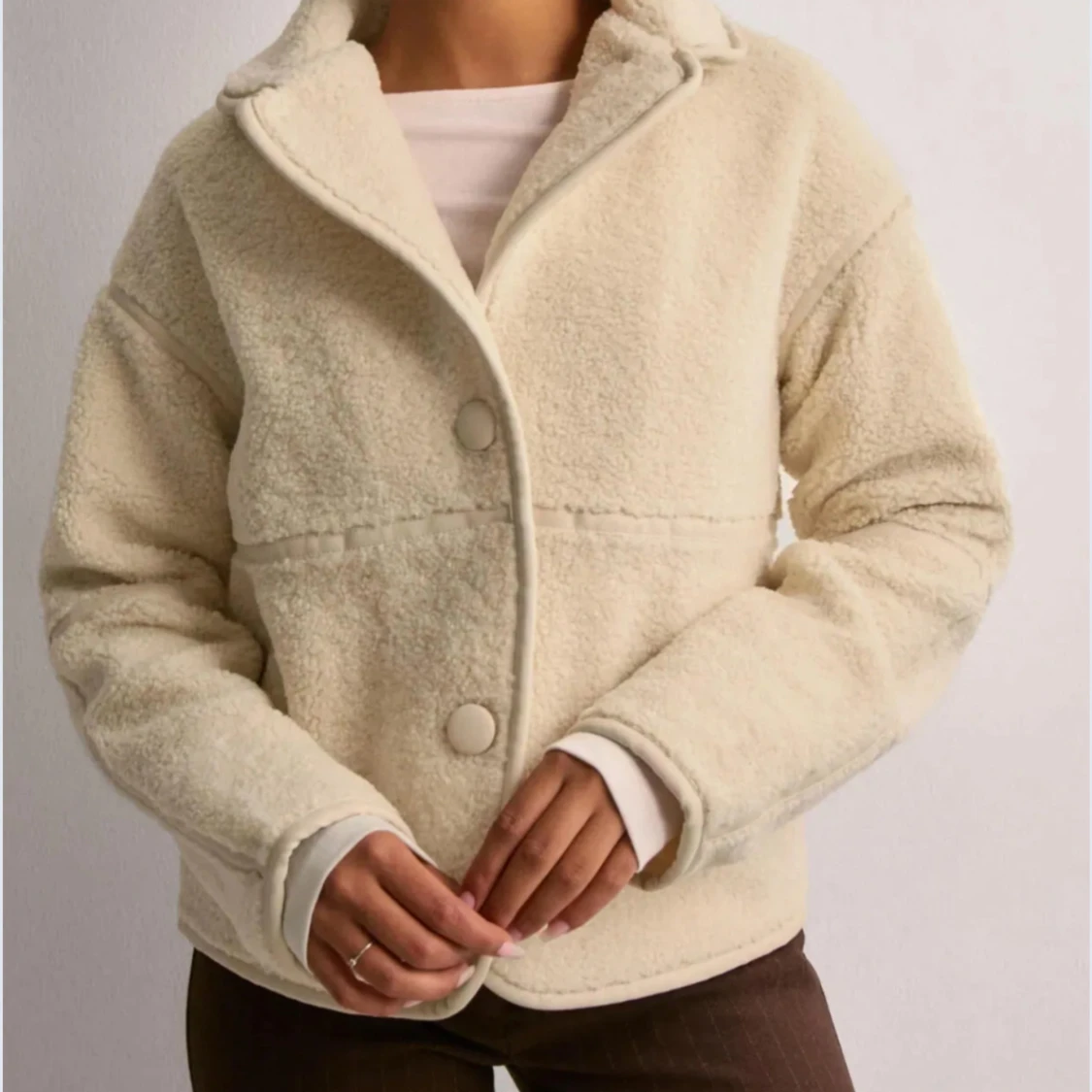 Mysig beige teddyjacka med krage och knappar fram. Köpt i våras men tyvärr inte används, från Nelly nypris600😍