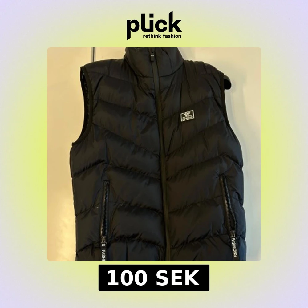Snygg svart dunväst med dragkedja framtill och två praktiska fickor med dragkedjor.