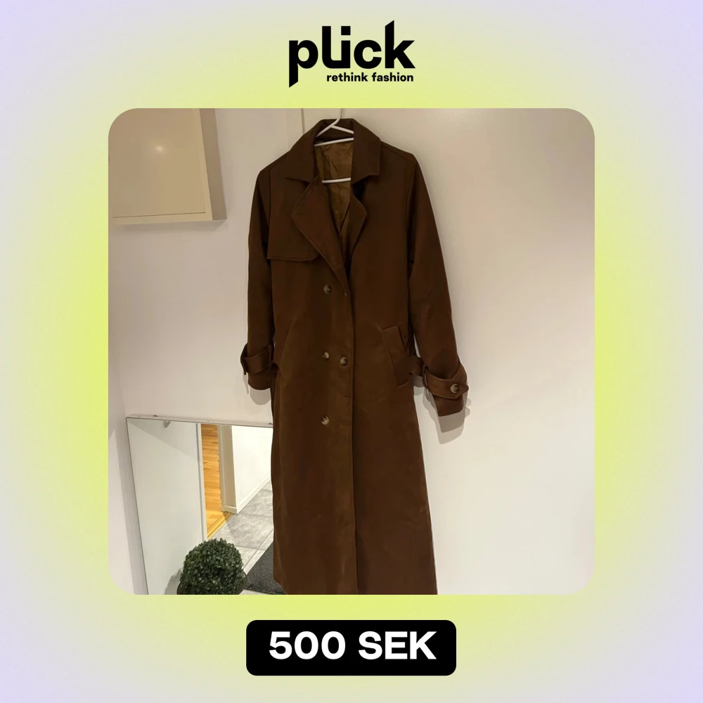 Säljer en snygg brun trenchcoat, oanvänd . Den har långa ärmar och knappar framtill samt ett bälte i midjan för en klassisk look. Perfekt för höst och vår när du vill vara både stilren och varm.
