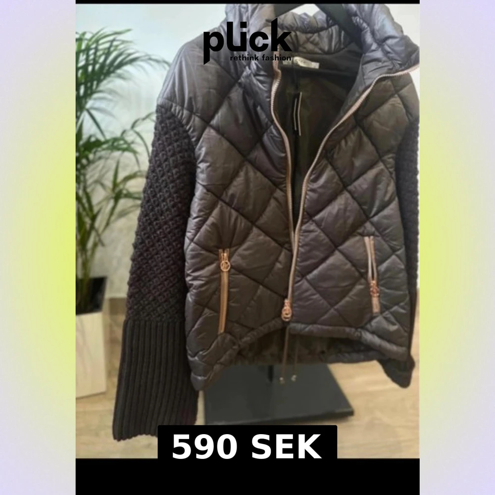 Säljer en unik mörkbrun pufferjacka från bastet med quiltat mönster och grovstickade ärmar. Jackan har högt krage, två fickor med guldfärgade dragkedjor och snygga detaljer med snörning. Köptes förra veckan drog av pistallpen och använt typ 2 gånger, säljer då jag ska köpa en annan istället.