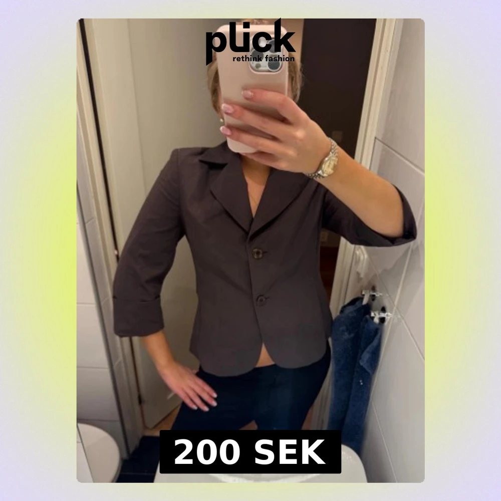 Stilren mörkbrun kavaj med trekvartsärmar och två knappar framtill. Klassisk krage och figurnära passform som ger en snygg siluett. Perfekt att styla till både jeans och kostymbyxor.