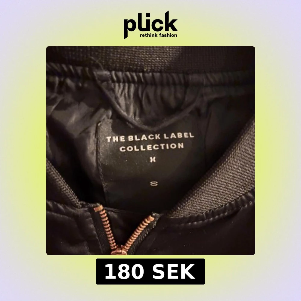 Snygg svart bomberjacka från The Black Label Collection i storlek S. Jackan har en glansig finish, ribbade muddar och detaljer i guld på dragkedjorna. Klassisk passform med fickor på sidorna och ärmen. Perfekt för dig som vill ha en stilren och trendig look.