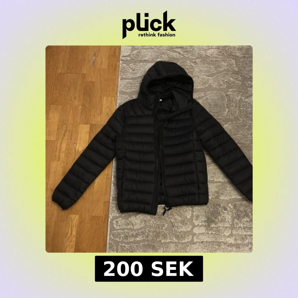 Svart pufferjacka från Pier One med huva och horisontella sömmar. Jackan har dragkedja framtill och är lätt vadderad, perfekt för kyliga dagar. Enkel och stilren design som funkar till det mesta. Materialet är syntet och jackan har lång ärm.