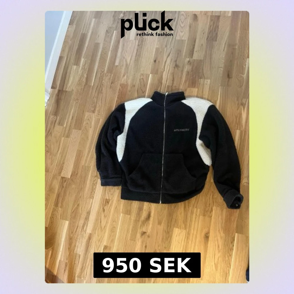 Svart teddyjacka med vita paneler på axlarna och ärmarna, hel dragkedja framtill och hög krage. Jackan har två stora fickor och ett broderat MADISON-tryck på bröstet. Perfekt för dig som gillar chill och oversized vibe. Säljs inte längre, orginal pris var 1500kr