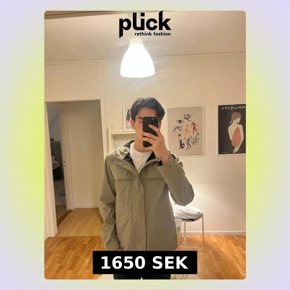 Säljer en stilren ljusgrön regnjacka med huva och dragkedja framtill. Jackan har två stora bröstfickor med lock och justerbar huva med snörning. Perfekt för regniga dagar och enkel att matcha med olika outfits. Ordinarie pris 2750kr.