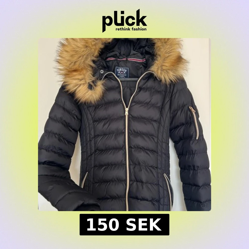 Snygg svart dunjacka från Vinson Polo Club med fluffig fuskpäls på huvan. Jackan har guldiga dragkedjor och fickor med dragkedja. Perfekt för kalla dagar och ger en riktigt clean look.