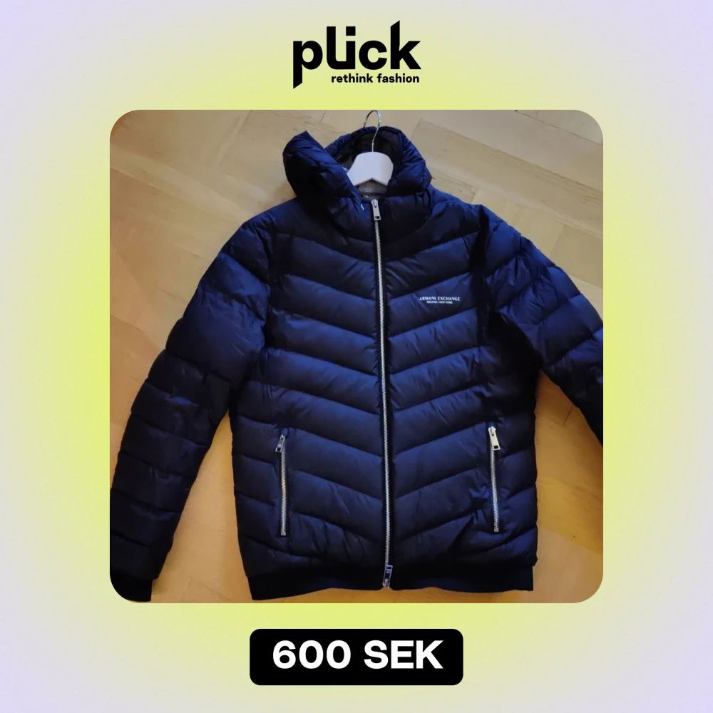 Säljer en snygg svart pufferjacka från Armani Exchange i storlek S. Jackan har en stilren design med dragkedja och är perfekt för kalla dagar. Den är i mycket bra skick och har en modern look med sitt quiltade mönster. Perfekt för både höst och vinter!
