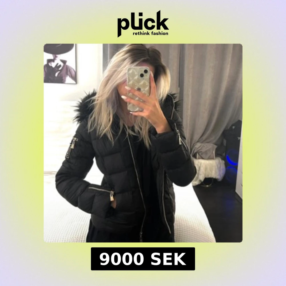 Säljer en svart pufferjacka med huva och fuskpälsdetalj. Jackan har dragkedja framtill och på ärmarna, samt quiltad design. Perfekt för kyliga dagar och riktigt snygg till vardags.