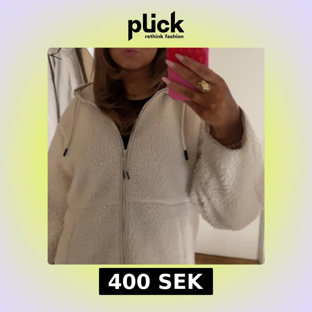 Mysig vit teddyjacka med dragkedja och huva. Perfekt för kyliga dagar. Jackan har en avslappnad passform och långa ärmar.