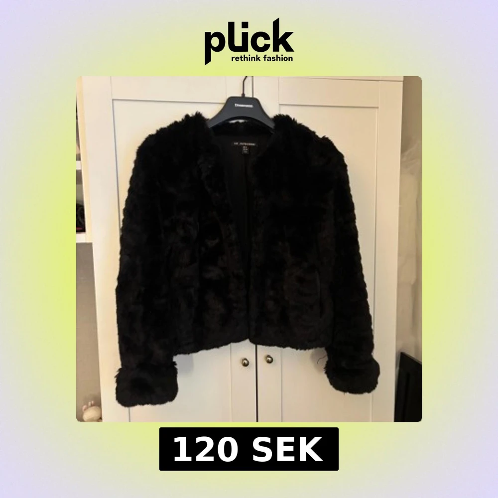 Säljer en svart, fluffig pälsjacka från trf_outerwear. Jackan har lång ärm och är perfekt för att ge en trendig look. Mjuk och gosig känsla med klassisk rund halsringning.