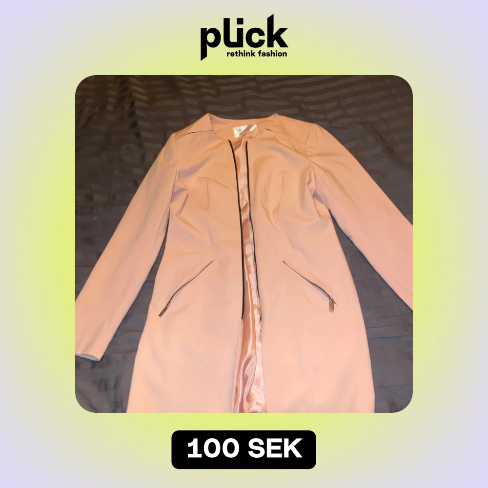 Säljer en superfin ljusrosa kappa i mycket bra skick. Den har en stilren design med dragkedja framtill och två snedställda fickor med dragkedjor. Perfekt för vår och höst när du vill vara både snygg och bekväm. Passar till både vardag och fest!