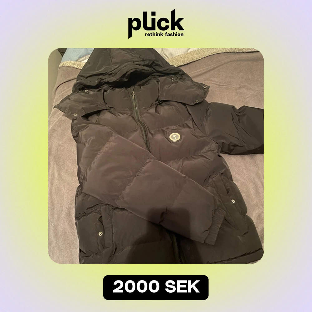 Snygg svart pufferjacka från Trapstar med broderad logga på ryggen. Removable Hood. 7500 på StockX