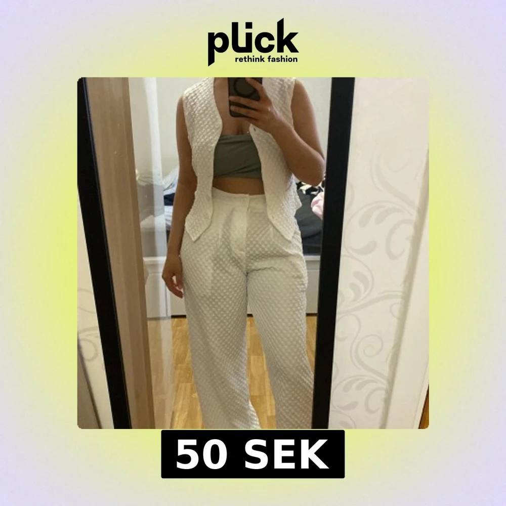 Säljer en vit quiltad väst med struktur och utan ärmar. Västen har en klassisk passform och är perfekt för att ge din outfit en trendig touch. Passar snyggt över en topp eller skjorta.