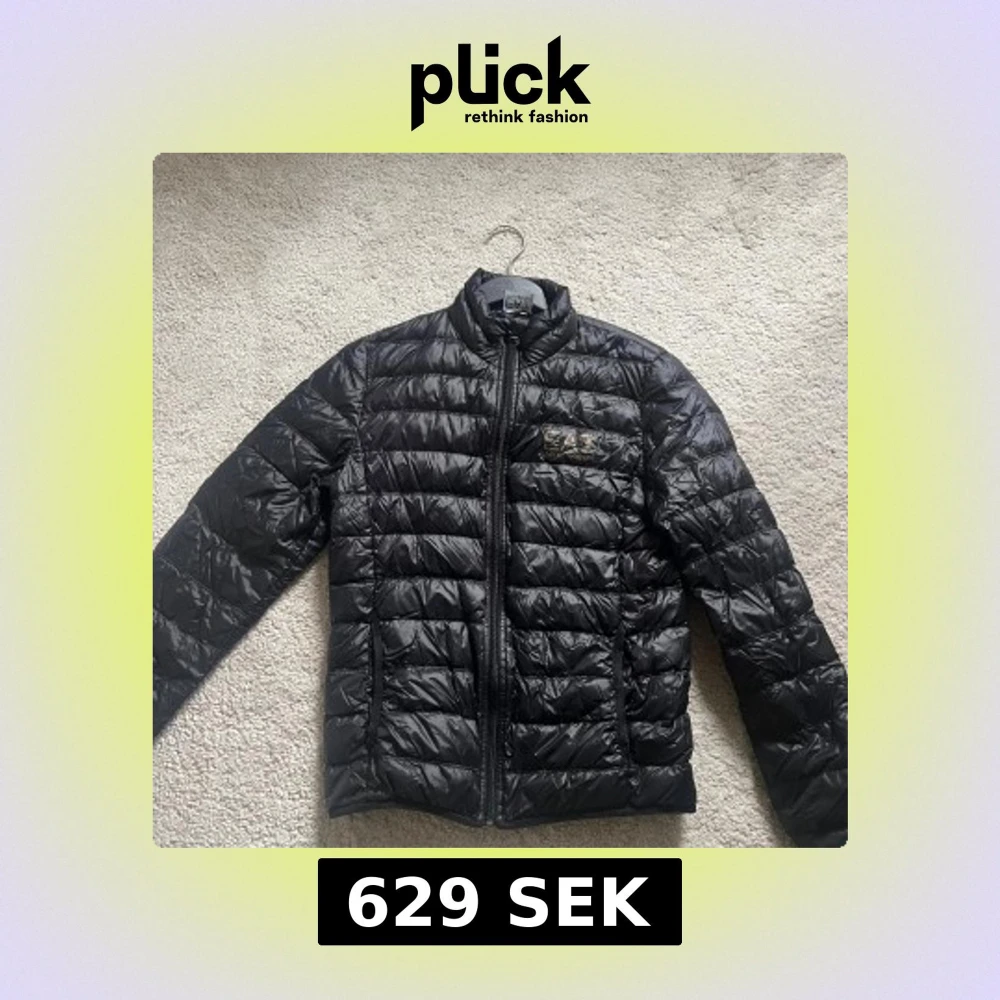 Snygg svart pufferjacka från EA7 Emporio Armani med quiltad design och diskret logga på bröstet. Jackan har dragkedja framtill, hög krage och långärmad passform. Perfekt för kyliga dagar och ger en clean, modern look.
