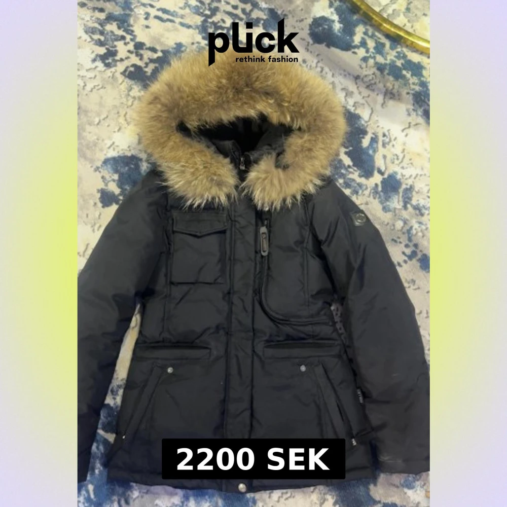 Jackan är i nyskick och använd väldigt få gånger. Jackan kostar 5000kr på hemsidan jacka. Storlek 36 motsvarar storleken S
