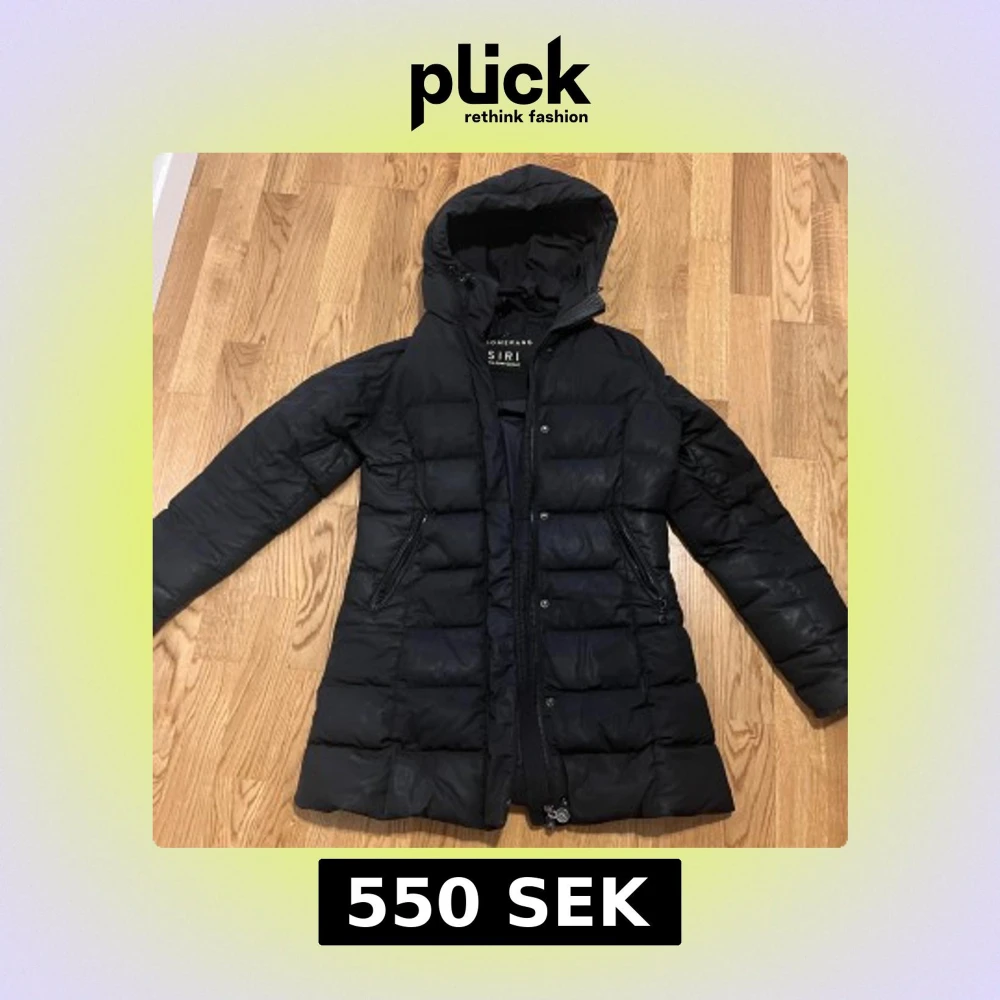 Säljer en svart, lång dunjacka från Boomerang modell SIRI. Jackan har huva, två dragkedjeförsedda fickor och quiltad design. Perfekt för kalla dagar och har en stilren look med raka linjer och diskret logga på insidan. B