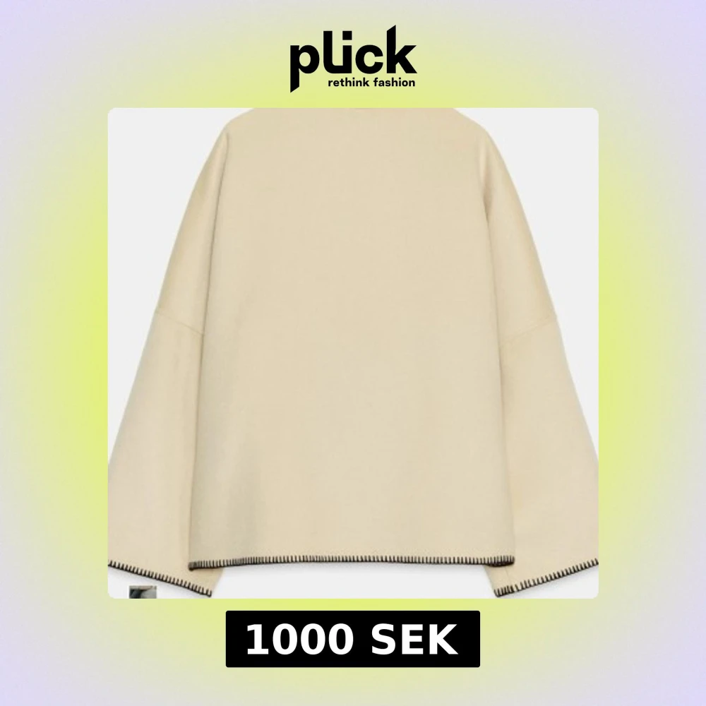 Stilren beige kappa med oversized passform och svarta knappar längs sidan. Jackan har markerade svarta sömmar längs kanterna och hög krage. Tillverkad i ett mjukt ullmaterial som ger en lyxig känsla. Perfekt för dig som gillar minimalistisk och modern stil.