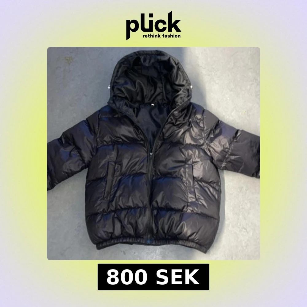 Säljer en svart pufferjacka med huva och dragkedja. Jackan är perfekt för kalla dagar och har en stilren design. Den är vadderad för extra värme och komfort. Storlek s