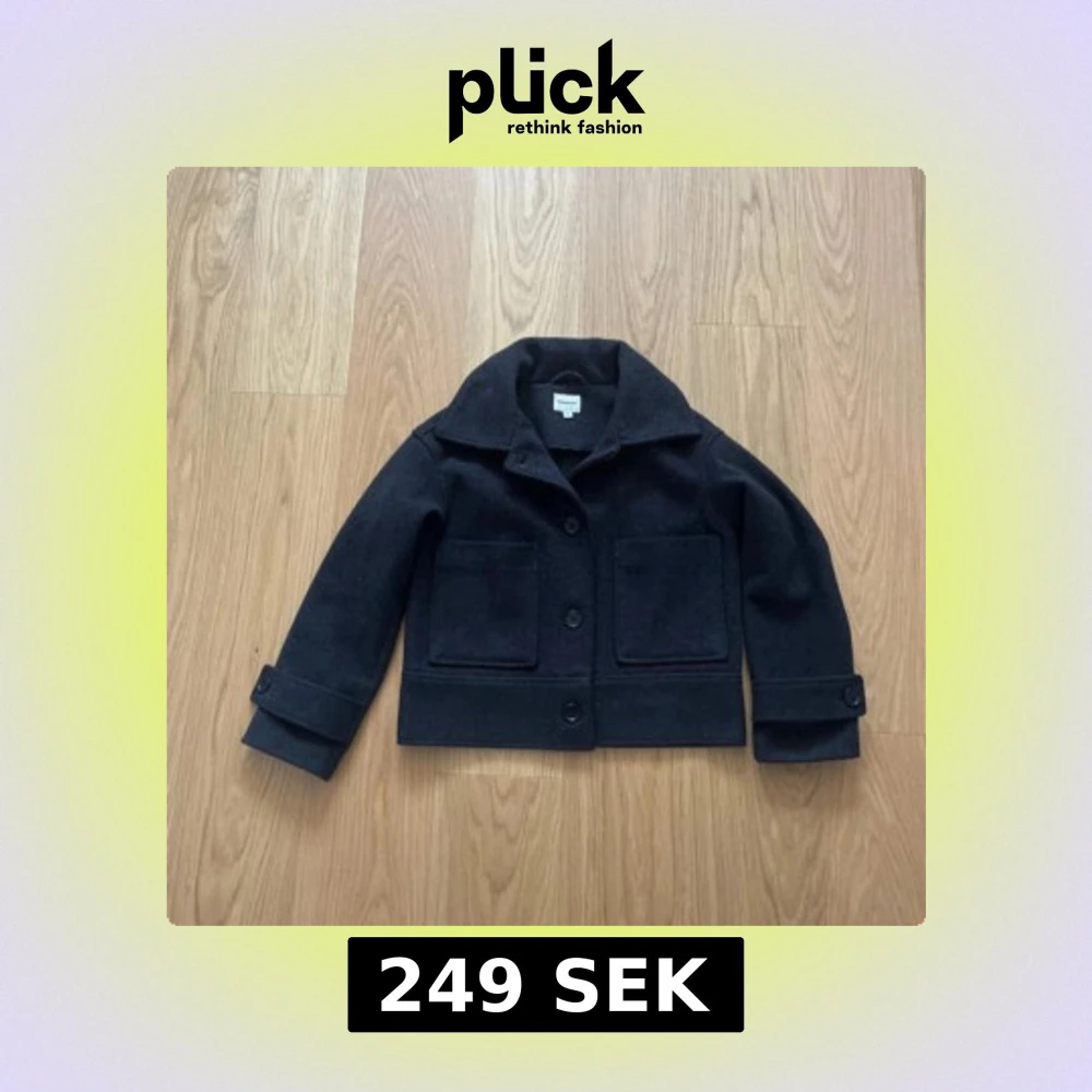 Stilren svart kappa med klassisk krage, stora framfickor och knappar framtill. Jackan är tillverkad i ull och har snygga detaljer vid ärmsluten. Perfekt för dig som gillar en tidlös look.