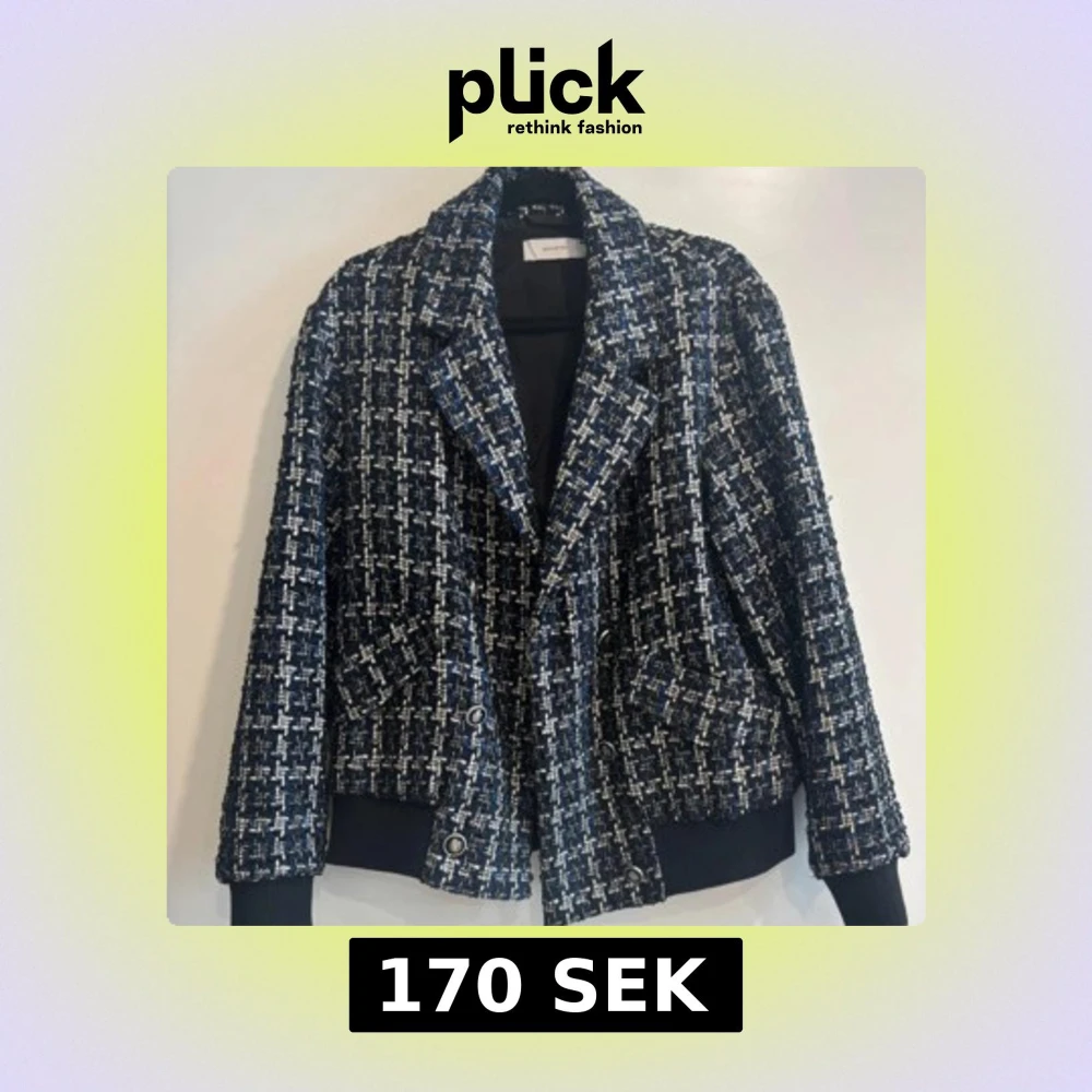 Snygg tweed jacka från Reserved i blå, svart och vit tweed. Jackan har bred krage, dubbla knappar framtill och fickor med lock. Materialet är grovt vävt och ger en lyxig känsla. Perfekt för dig som vill sticka ut med en trendig och klassisk look.